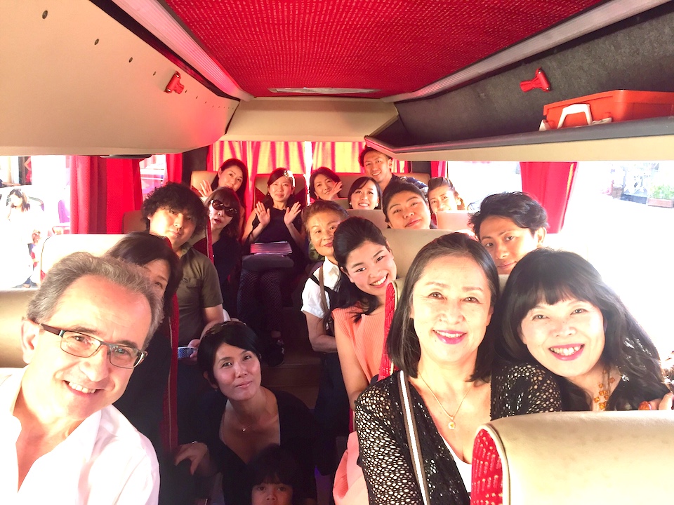 コンサート会場に向かう途中のバスにて。